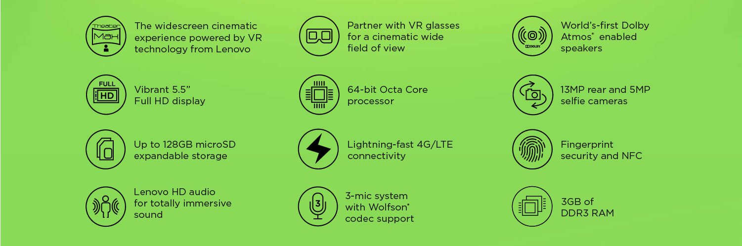 Those who love to watch movies on the big screen, for them the Lenovo K4 NOTE works like a breeze. The USP of the handset is its ability to fetch you a wider cinematic experience, powered by VR technology from Lenovo. Courtesy of TheaterMax that delivers you a mesmerising viewing experience on a super-size virtual screen. All you need to do is to use the VR glass for that unbelievable movie experience, right at your home. The phone comes equipped with a surround sound system which delivers you immersive audio experience. With a vibrant 5.5 inch full HD IPS display with 403 ppi and 178 degree viewing angle and DOLBY ATMOS enabled large chambered stereo speakers, the Lenovo K4 NOTE turns into your perfect companion for a journey, influenced by mobile gaming, web browsing and video playback.